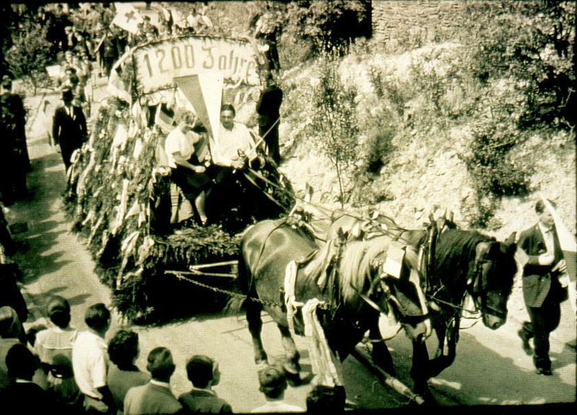 1954 fand die 1200-Jahrfeier der urkundlichen Ersterwähnung von 754 statt. Bisher hatten nur die beiden Städte Simmern und Kirchberg eine 600-Jahrfeier bzw. 700-Jahrfeier durchgeführt. Das Hunsrückdorf Biebern mit der frühesten urkundlichen Ersterwähnung wurde mit dieser Feier Vorbild für viele Jubiläumsfeierlichkeiten. Ernst Siegel, Simmern, erstellte die historische Festschrift "1200 Jahr-Feier des Hunsrückdorfes Biebern". Die 1200-Jahrfeier erstreckte sich über drei Tage (24. - 26. Juli 1954). Die Höhepunkte bildeten der Festumzug und der Festakt. Der Festzug war in zwei Teile gegliedert: Der 1. Teil stellte Persönlichkeiten des Hunsrücks aus 12 Jahrhunderten dar und der 2. Teil das Hunsrücker Bauernleben einst und jetzt. Die Hunsrücker Zeitung berichtet von mehr als 10 000 Zuschauern.